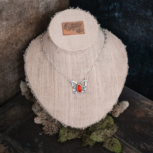 A beautiful Mexican Fire Opal stone is set into a sterling butterfly. This is a really special stone and one of a kind.