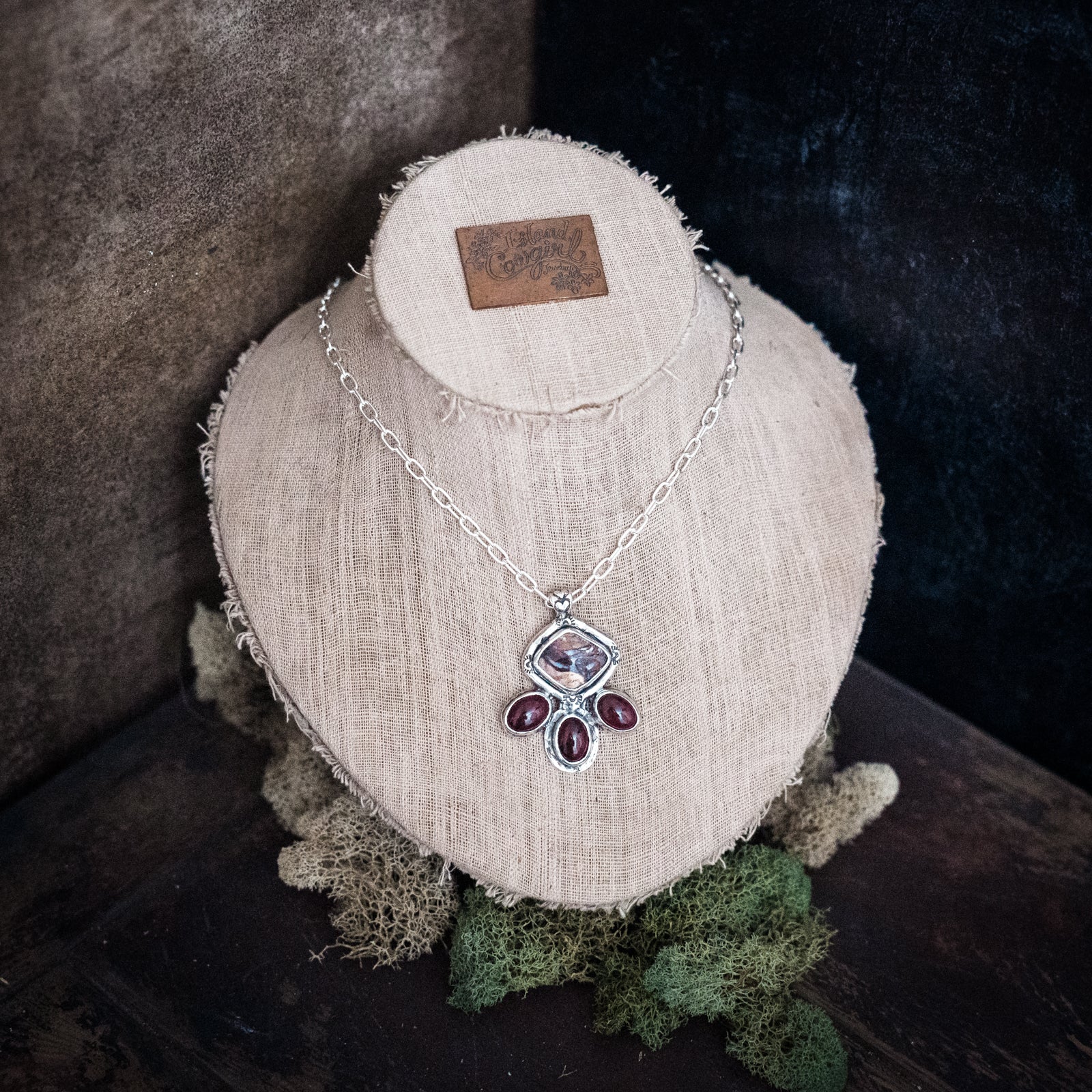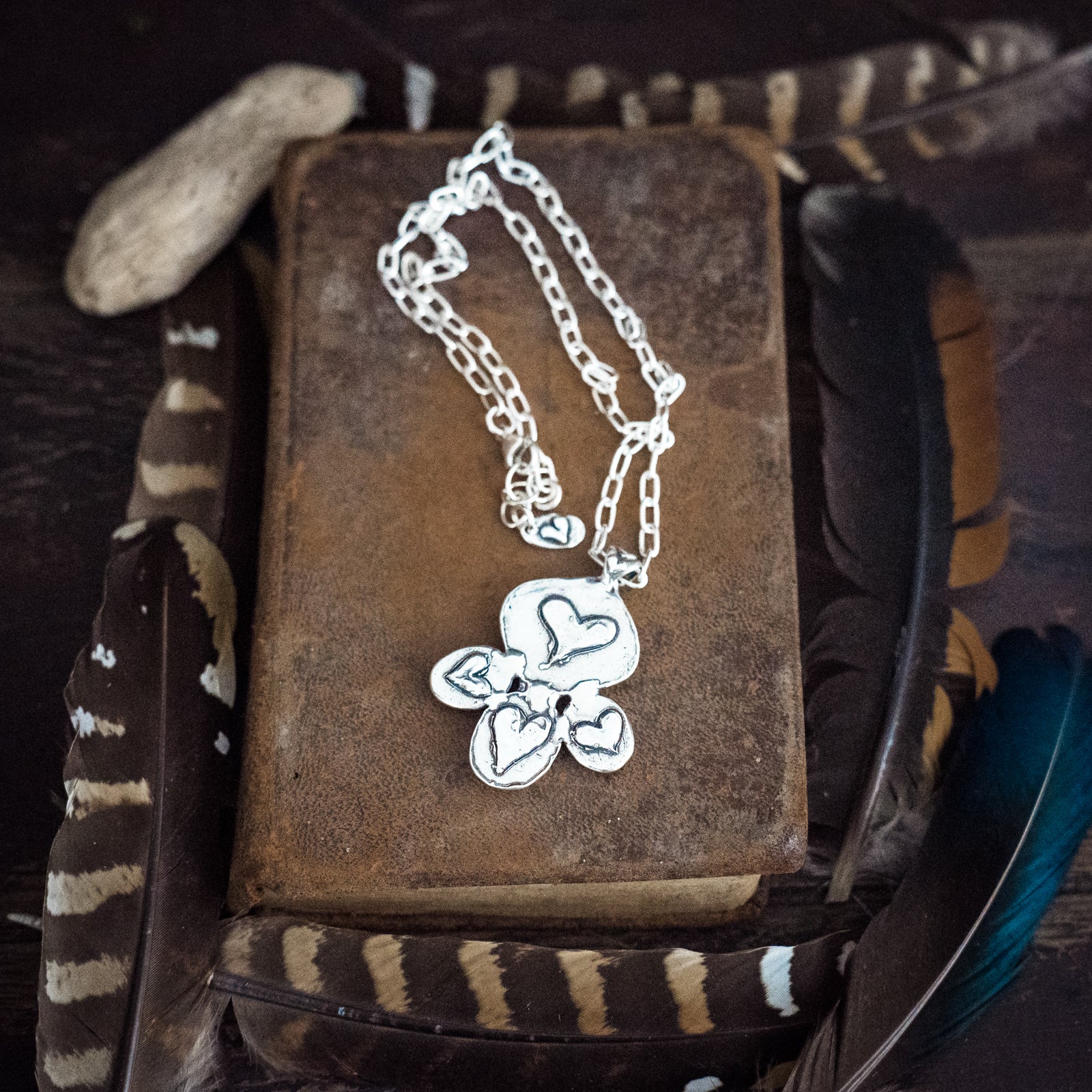 A beautiful Cantera Opal stone is set into a sterling bezel with hearts etched onto the back.  One of a kind