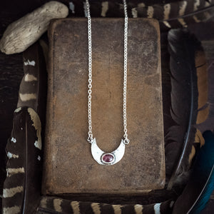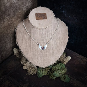 A magical beautiful pink tourmaline stone is set into a half moon. A heart is  etched onto the back. One of a kind