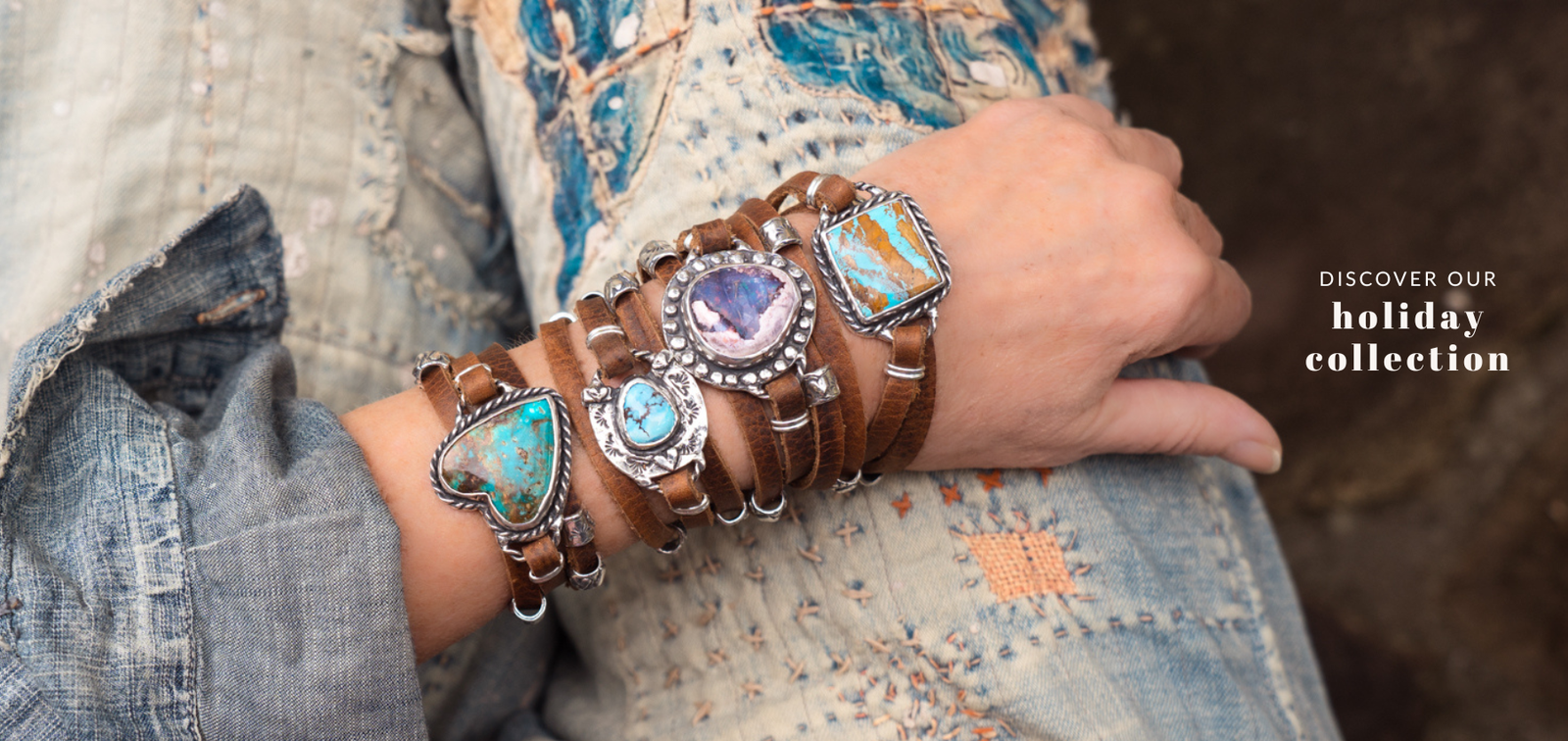 Slow batch, one-of-a-kind Western Turquoise Jewelry made by heart and hand by a real cowgirl. Each and every real turquoise stone is hand picked for its rugged and romantic feel. So if you are looking for sterling silver jewelry that speaks to your inner cowgirl and embodies the bohemian spirit of the west, you are going to LOVE our new Western Turquoise Jewelry collection. We usually release new collections every 4-6 weeks.