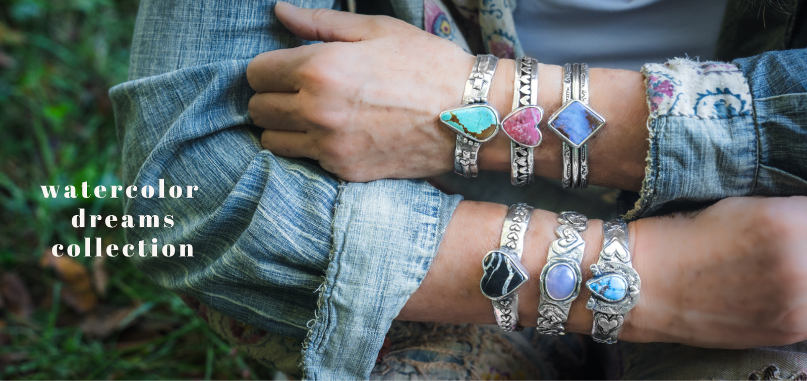 Slow batch, one-of-a-kind Western Turquoise Jewelry made by heart and hand by a real cowgirl. Each and every real turquoise stone is hand picked for its rugged and romantic feel. So if you are looking for sterling silver jewelry that speaks to your inner cowgirl and embodies the bohemian spirit of the west, you are going to LOVE our new Western Turquoise Jewelry collection. We usually release new collections every 4-6 weeks.