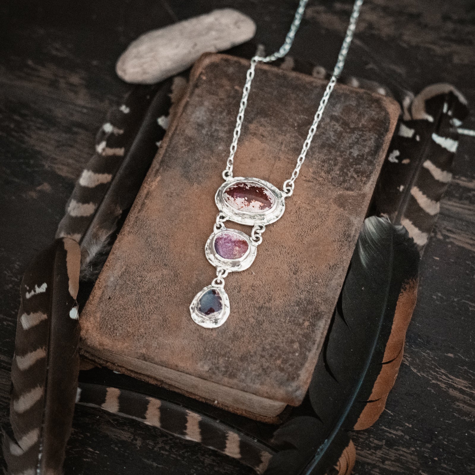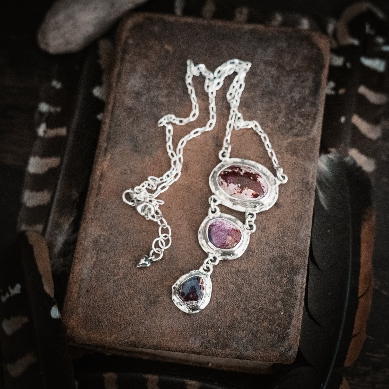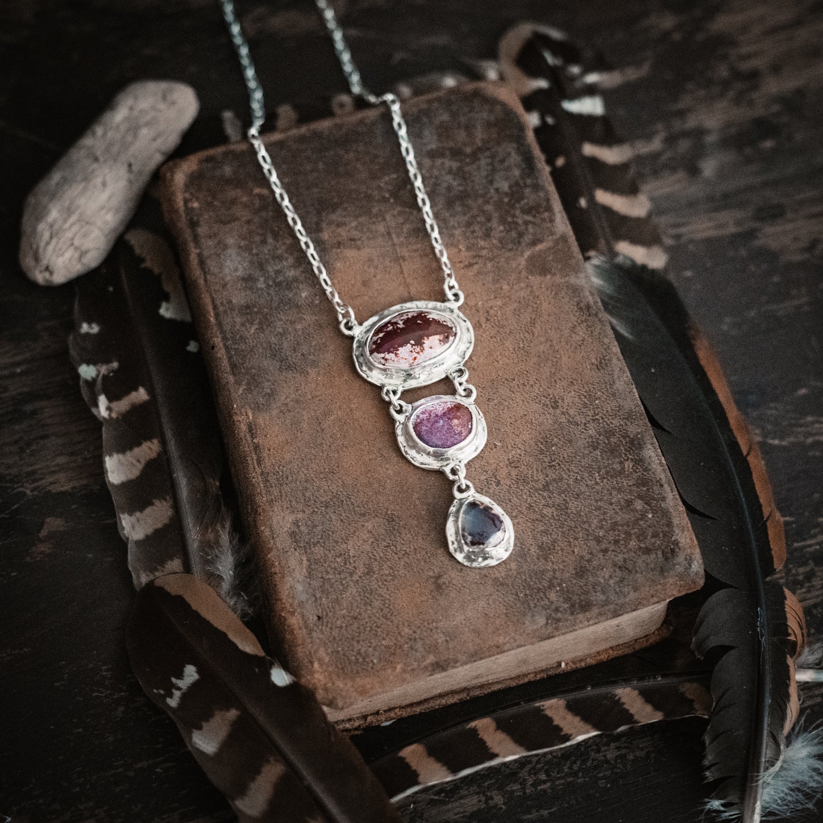 A beautiful trail of Cantera Opals dangles from a sterling chain. Organic hearts adorn the back. One of a Kind